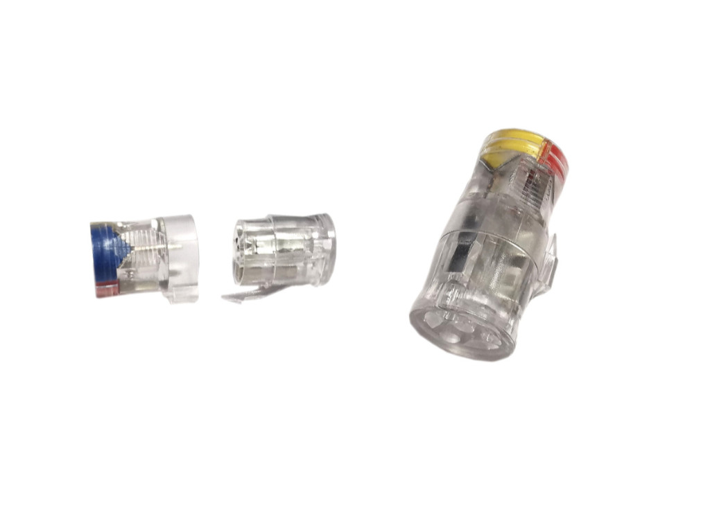 Złączka elektryczna umożliwia połączenie przewodów elektrycznych typu drut w łatwy i pewny sposób bez użycia jakichkolwiek narzędzi. wystarczy wcisnąć drut w otwór a on się samoczynnie w nim zablokuje. Złączka umożliwia rozdzielenie z 3 na 6 przewodów. Kostka ma możliwość rozłączenia.