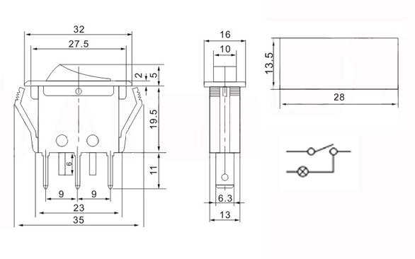 - wyprowadzenia do lutowania przewodów, lub nasunięcia konektora samochodowego 6,3mm
